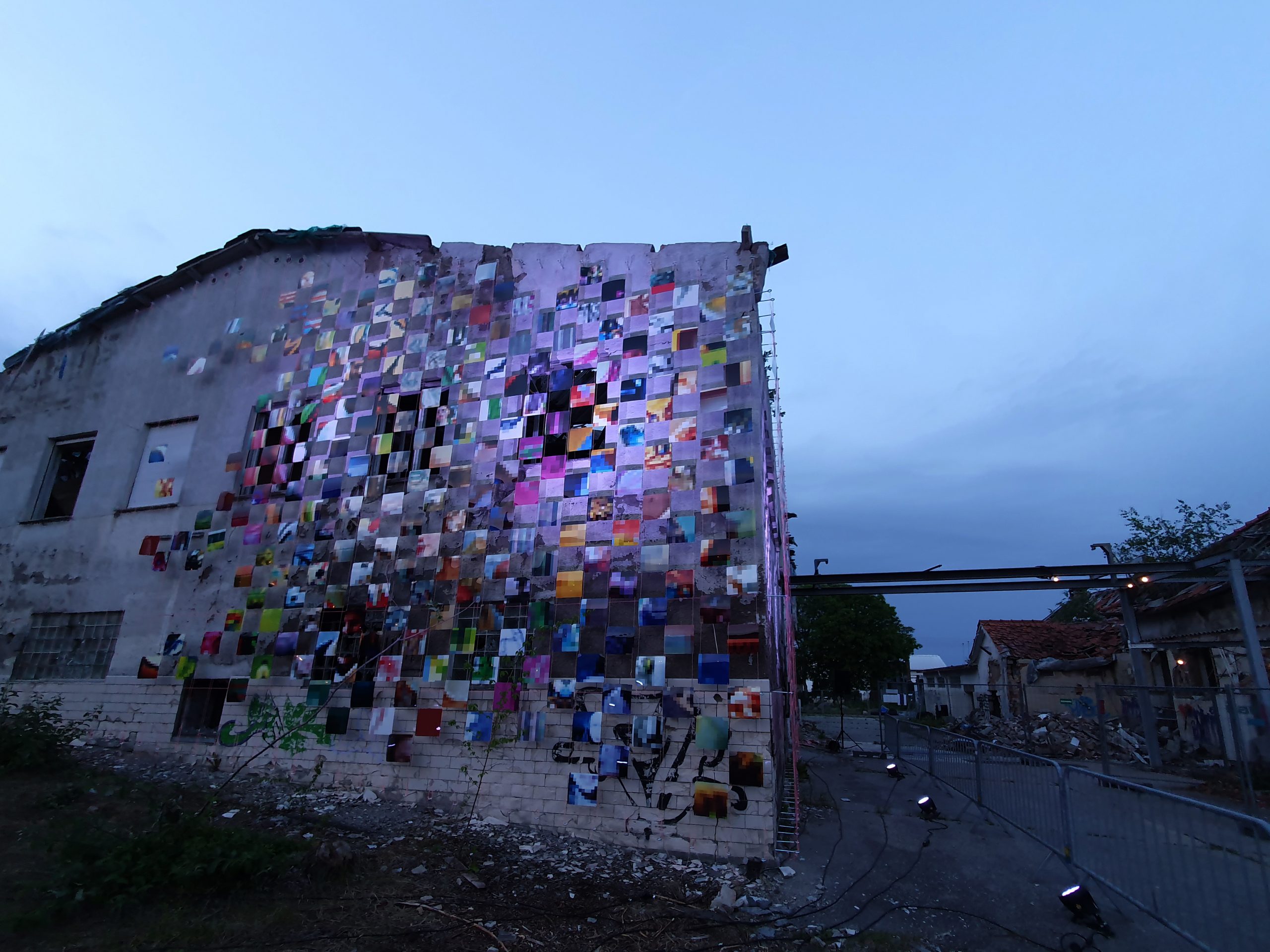For the installation, one of the complex’s main buildings was covered with 468 acrylic panels (Pixels), reused from the SkypeLab 1000 Pixel installation created in 2020.